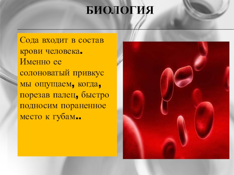 Сода входит в состав крови человека. Именно ее солоноватый привкус мы