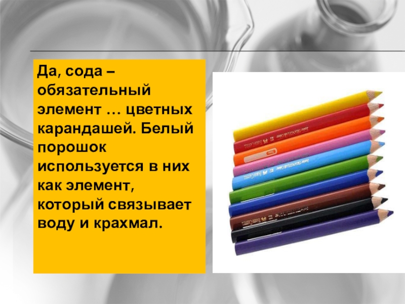 Да, сода – обязательный элемент … цветных карандашей. Белый порошок