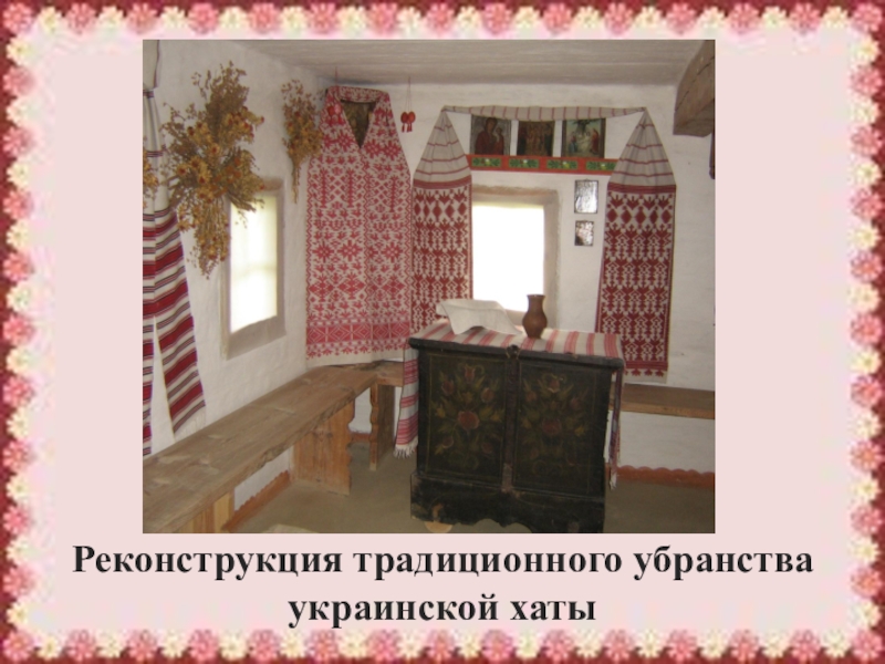 Слайд 3Реконструкция традиционного убранства украинской хаты