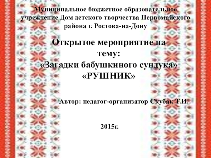 Слайд 1Муниципальное бюджетное образовательное учреждение Дом детского творчества Первомайского района г. Ростова-на-Дону