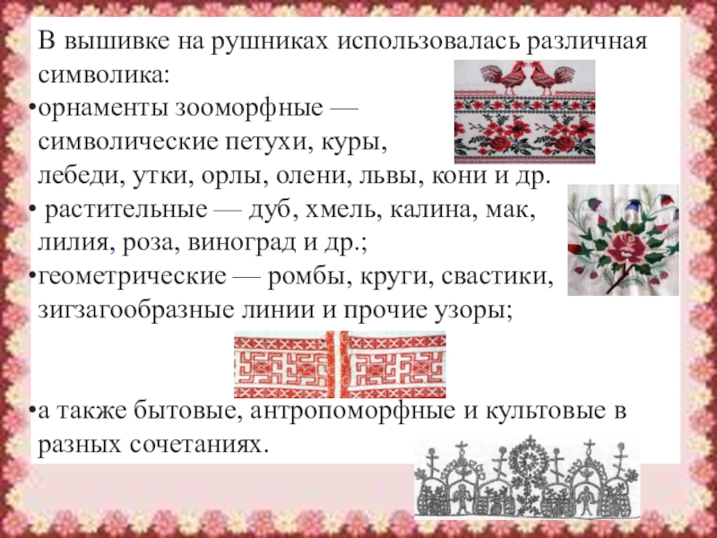 Слайд 5В вышивке на рушниках использовалась различная символика: