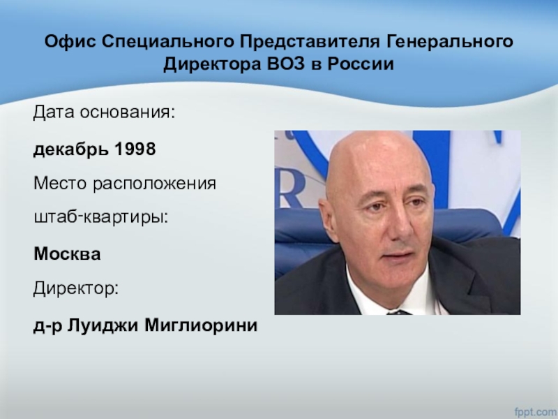 Слайд 4Офис Специального Представителя Генерального Директора ВОЗ в России