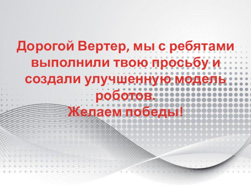 Слайд 9Дорогой Вертер, мы с ребятами выполнили твою просьбу и создали улучшенную