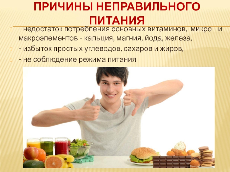 Слайд 22ПРИЧИНЫ НЕПРАВИЛЬНОГО ПИТАНИЯ