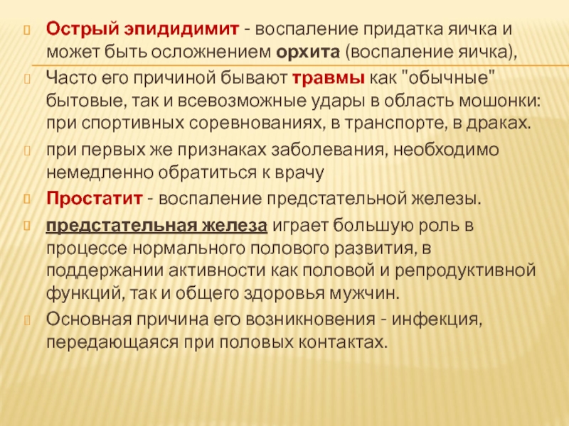 Слайд 52Острый эпидидимит - воспаление придатка яичка и может быть осложнением орхита