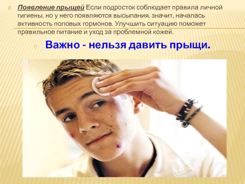 Слайд 45Появление прыщей Если подросток соблюдает правила личной гигиены, но у него