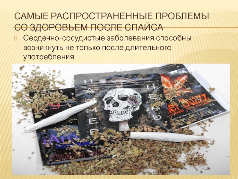 Слайд 13САМЫЕ РАСПРОСТРАНЕННЫЕ ПРОБЛЕМЫ СО ЗДОРОВЬЕМ ПОСЛЕ СПАЙСА
