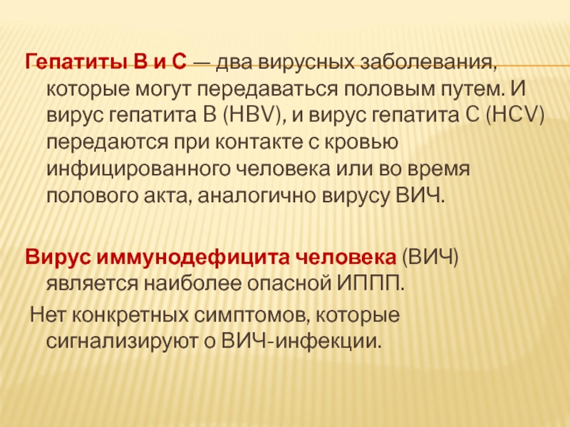 половым путем. И вирус гепатита B (HBV), и вирус гепатита C (HCV) передаются при контакте с кровью инфицированного человека или во время полового акта, аналогично вирусу ВИЧ.