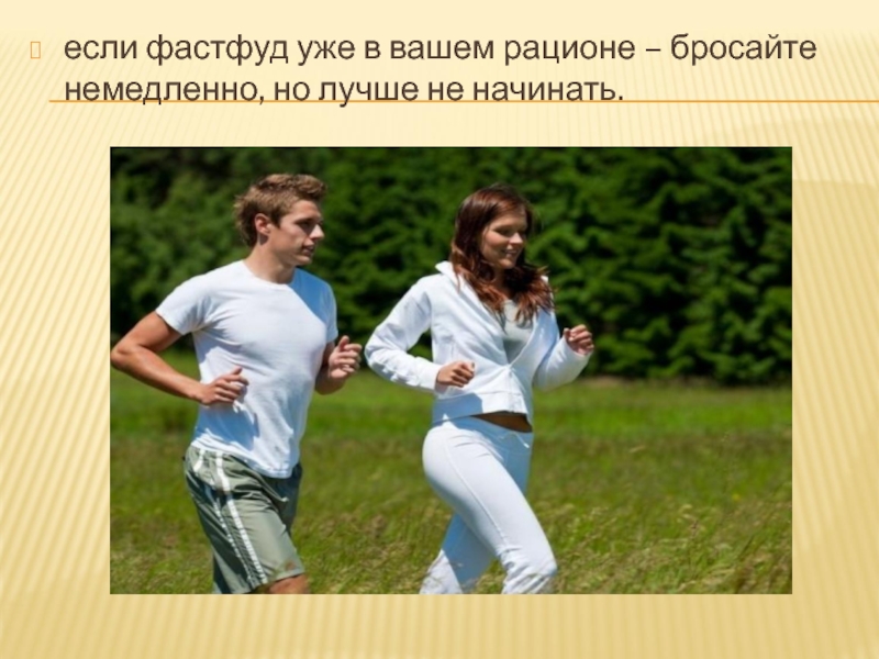 Слайд 27если фастфуд уже в вашем рационе – бросайте немедленно, но лучше