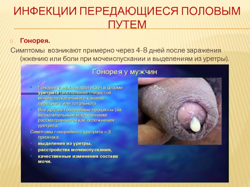 заражения (жжению или боли при мочеиспускании и выделениям из уретры).