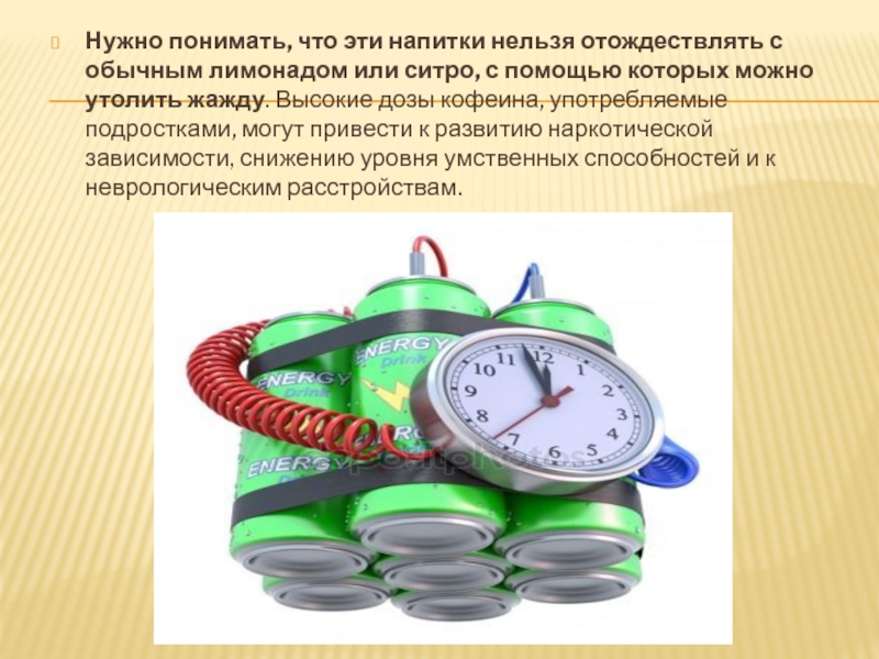 Слайд 35Нужно понимать, что эти напитки нельзя отождествлять с обычным лимонадом или