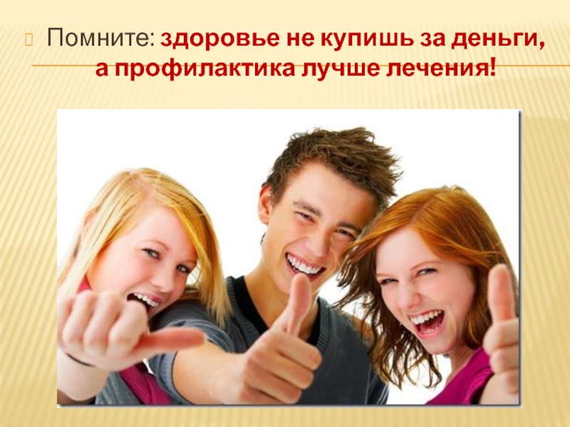 Слайд 38Помните: здоровье не купишь за деньги, а профилактика лучше лечения!