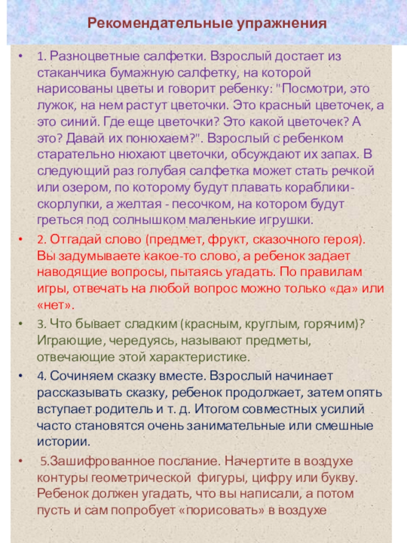 Слайд 7Рекомендательные упражнения