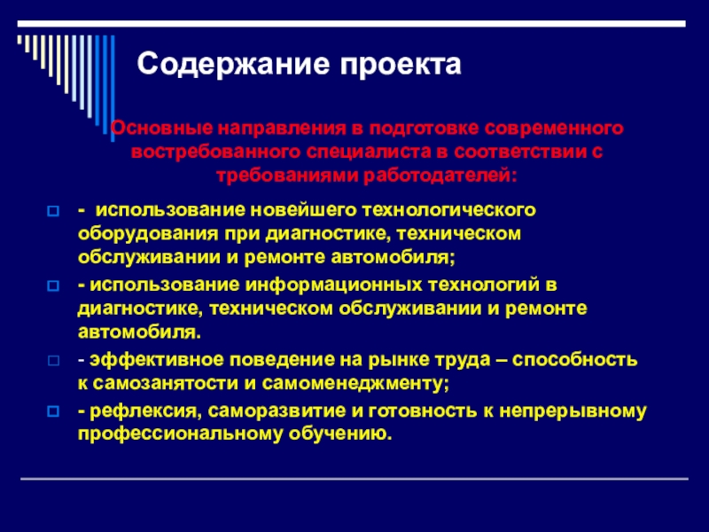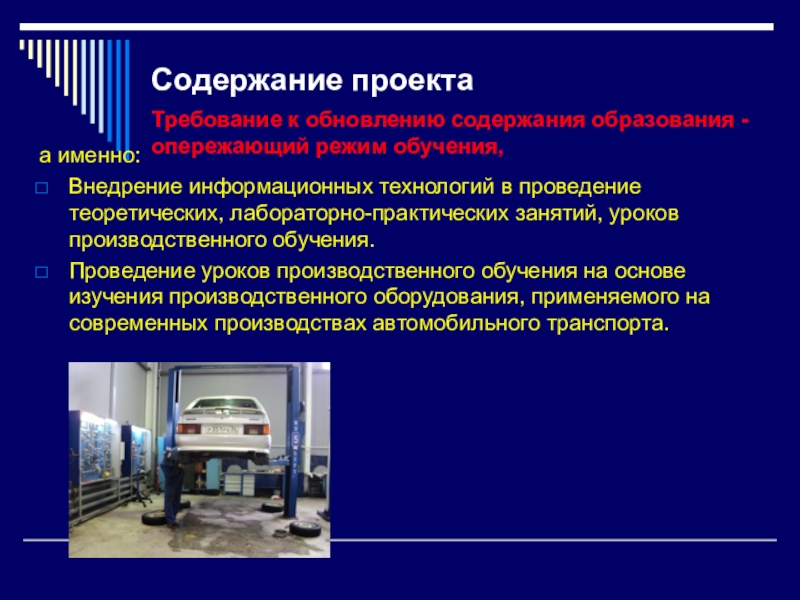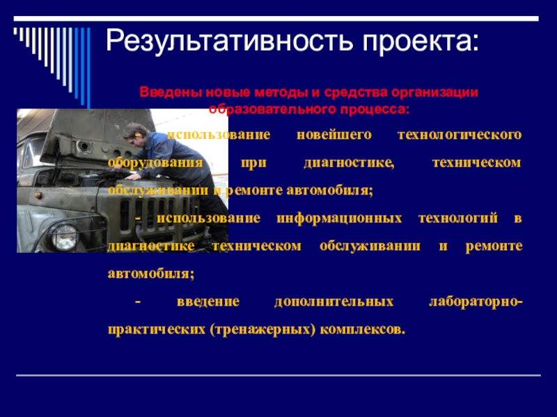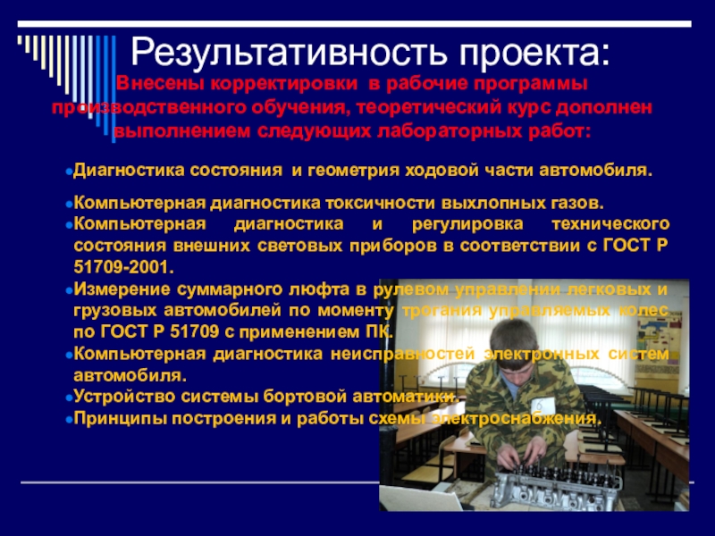 - использование информационных технологий в диагностике, техническом обслуживании и ремонте автомобиля.