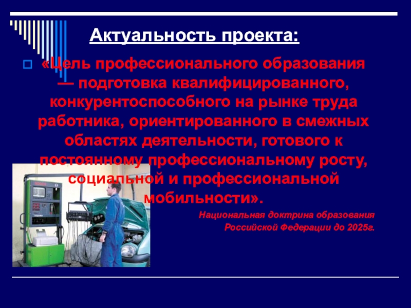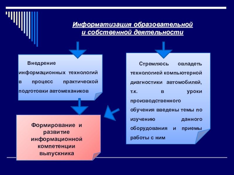 Стремлюсь овладеть технологией компьютерной диагностики автомобилей, т.к. в уроки производственного обучения введены темы по изучению данного оборудования и приемы работы с ним