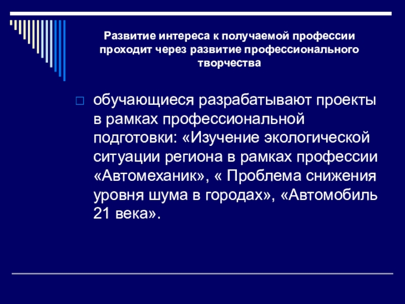 Развитие интереса к получаемой профессии проходит через развитие профессионального творчества