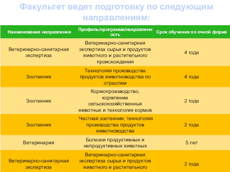 Слайд 5Факультет ведет подготовку по следующим направлениям:
