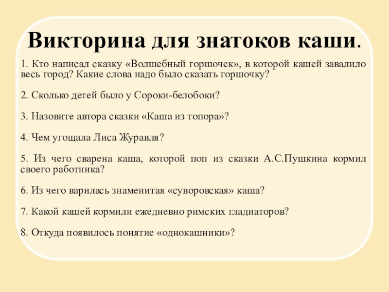 Викторина для знатоков каши.