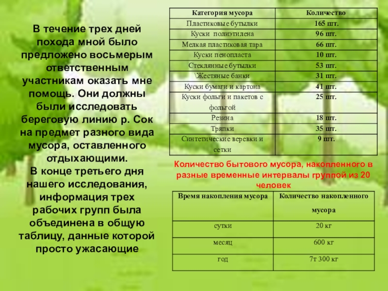 Исследуя проблему походного мусора в долине р.Сок нам удалось: