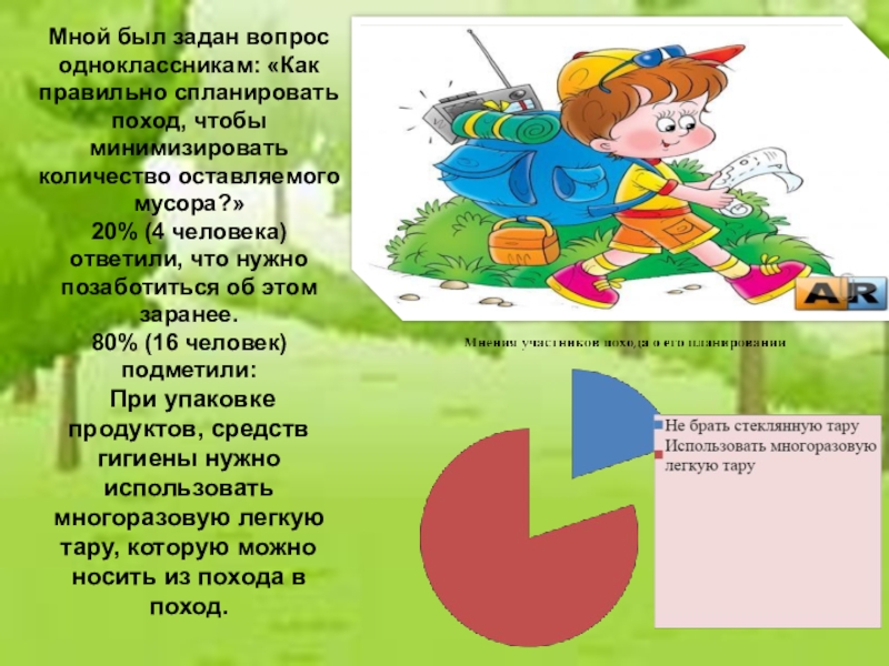 Слайд 6Мной был задан вопрос одноклассникам: «Как правильно спланировать поход, чтобы минимизировать