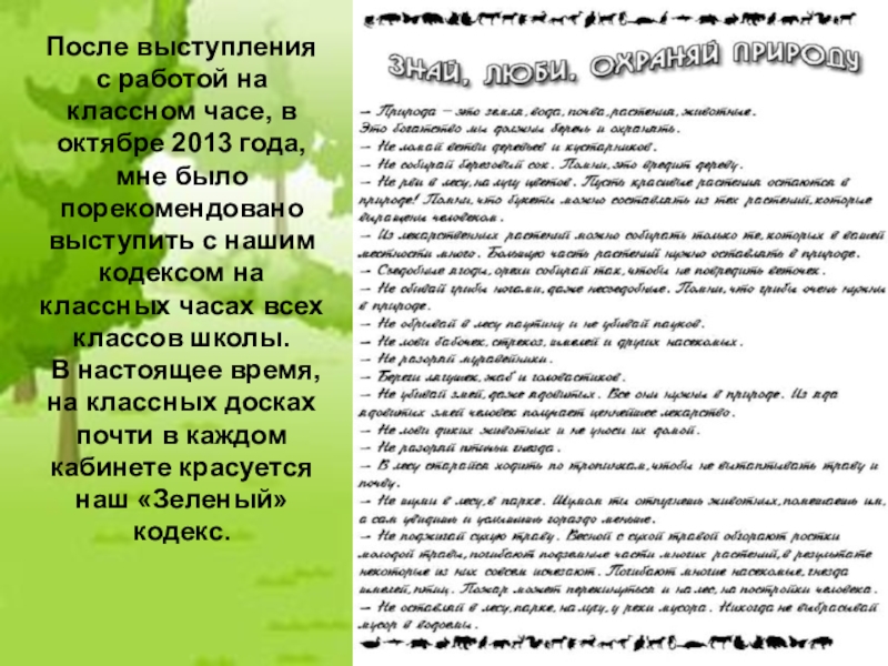 В настоящее время, на классных досках почти в каждом кабинете красуется наш «Зеленый» кодекс.