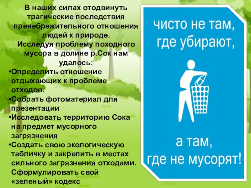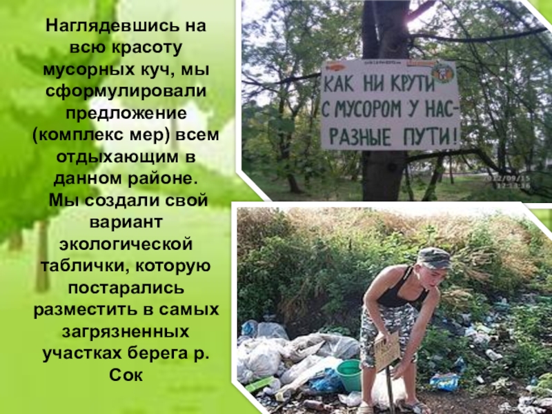Слайд 11С каждым годом берега реки Сок становятся все более замусоренными. Пройдя