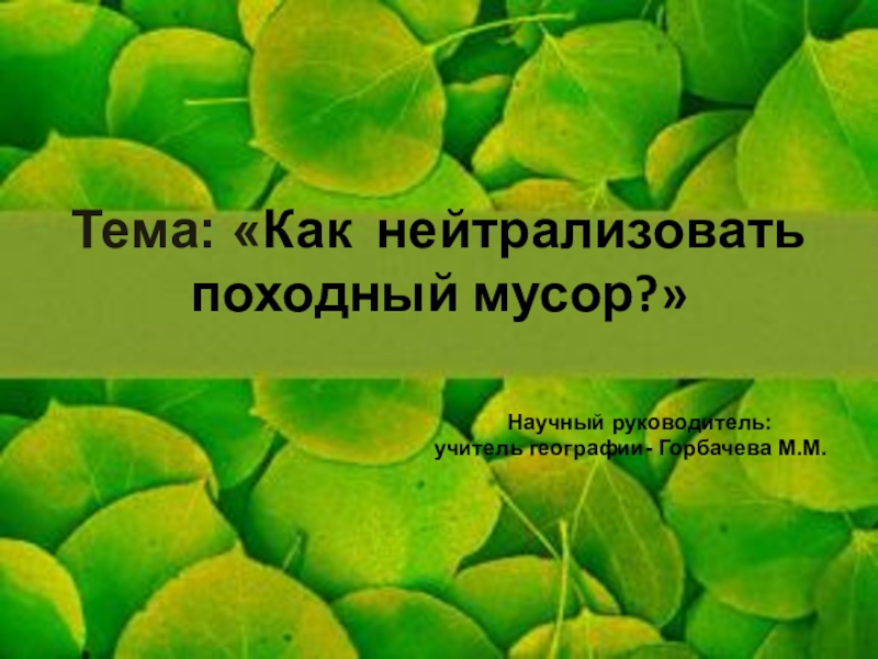 Слайд 1Тема: «Как нейтрализовать походный мусор?»