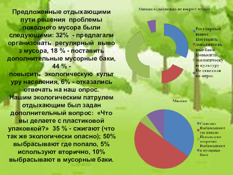 Слайд 19Предложенные отдыхающими пути решения проблемы походного мусора были следующими: 32% -