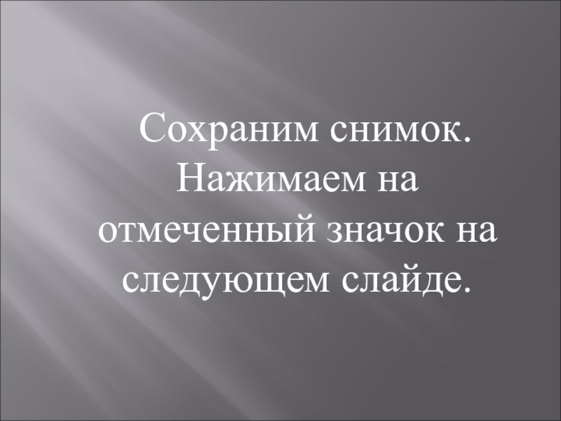 Сохраним снимок. Нажимаем на отмеченный значок на следующем слайде.
