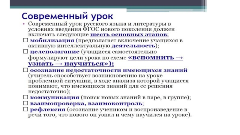 Слайд 7Современный урок русского языка и литературы в условиях введения ФГОС нового