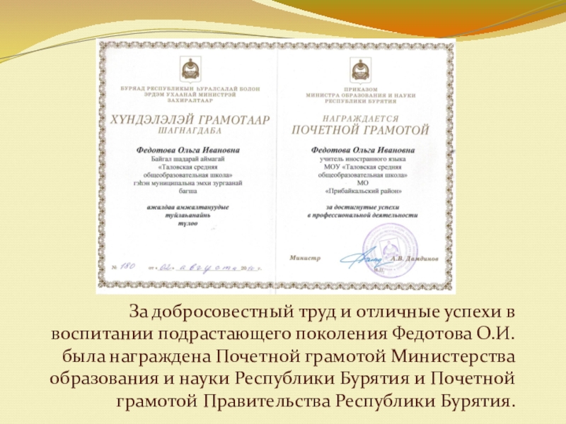 района Бурятской АССР. Социальное происхождение – служащая. В 1965 году пошла в Батуринскую среднюю школу в 1 класс. С 1973 года по 1975 год училась в средней школе № 13 г. Улан-Удэ. В 1975 году поступила в Бурятский государственный педагогический институт, который окончила в 1980 году. По окончании института была присвоена квалификация учителя иностранных языков.