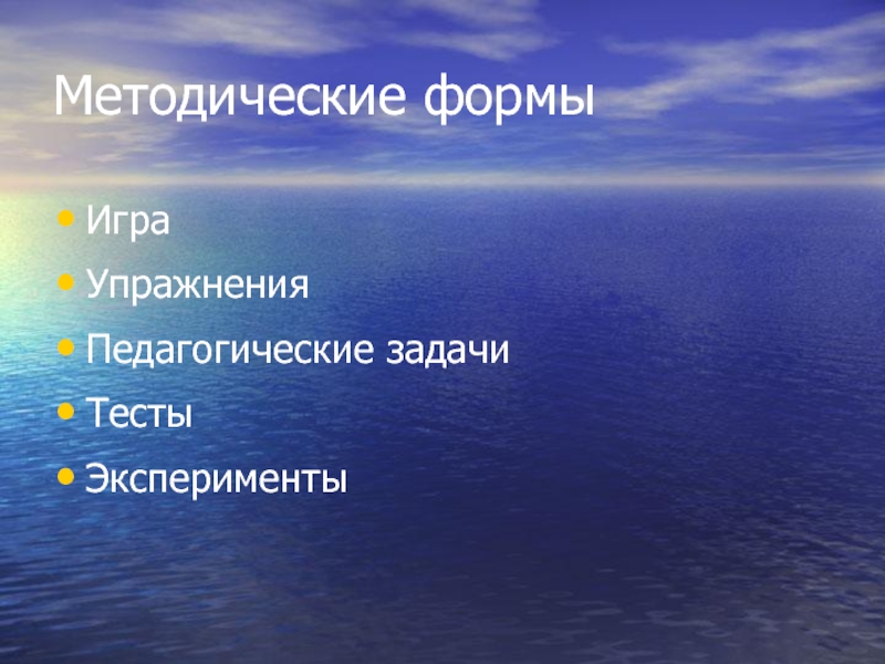 Методические формы ИграУпражненияПедагогические задачиТестыЭксперименты