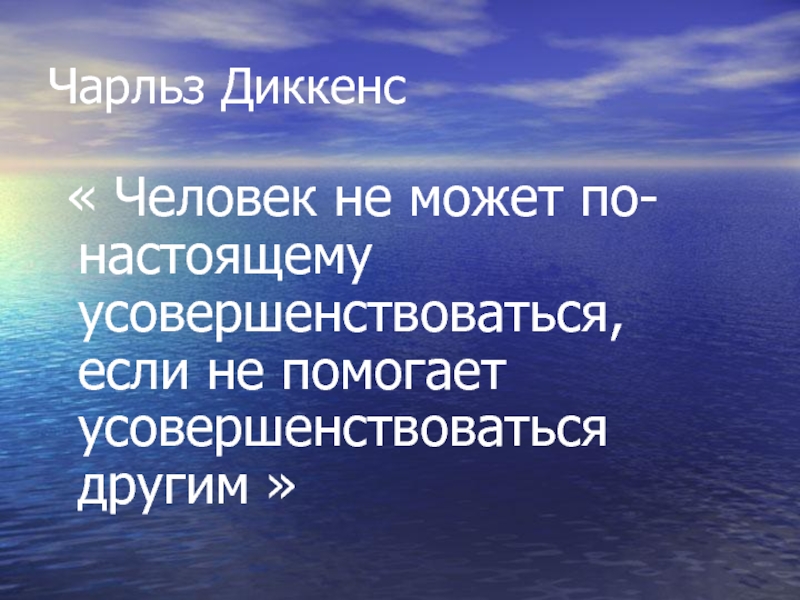 Чарльз Диккенс « Человек не может по-настоящему усовершенствоваться, если не помогает усовершенствоваться другим »