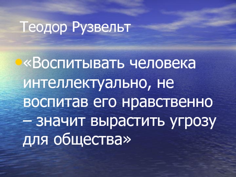 Теодор Рузвельт«Воспитывать человека интеллектуально, не воспитав его нравственно – значит вырастить угрозу для общества»