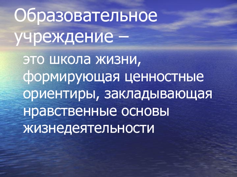 Образовательное учреждение – это школа жизни, формирующая ценностные ориентиры, закладывающая нравственные основы жизнедеятельности