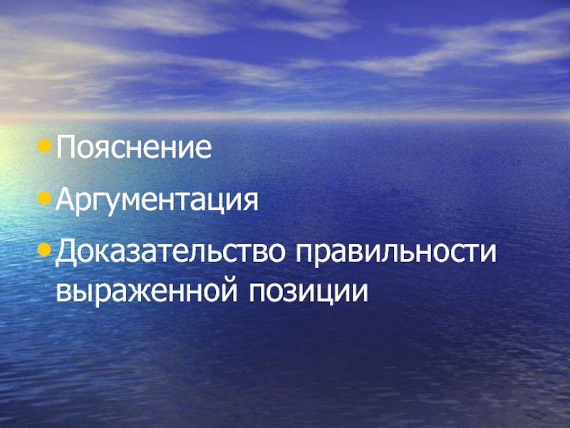 ПояснениеАргументацияДоказательство правильности выраженной позиции