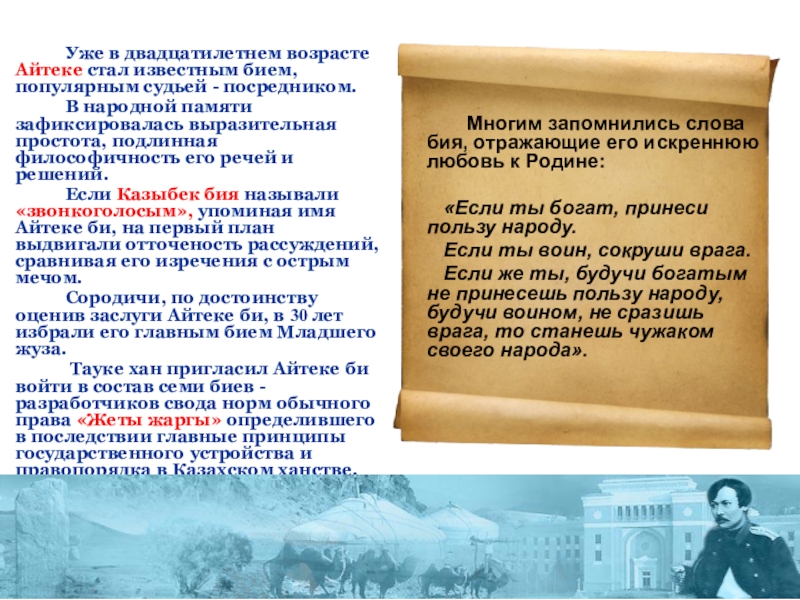 Многим запомнились слова бия, отражающие его искреннюю любовь к Родине: