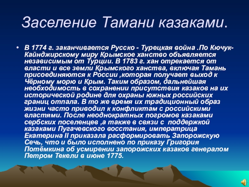 Слайд 4Заселение Тамани казаками.