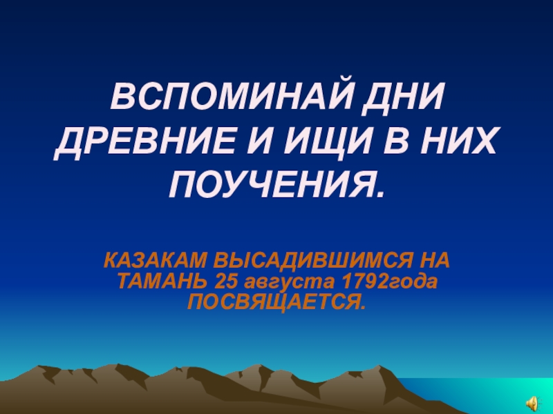 Слайд 1ВСПОМИНАЙ ДНИ ДРЕВНИЕ И ИЩИ В НИХ ПОУЧЕНИЯ.