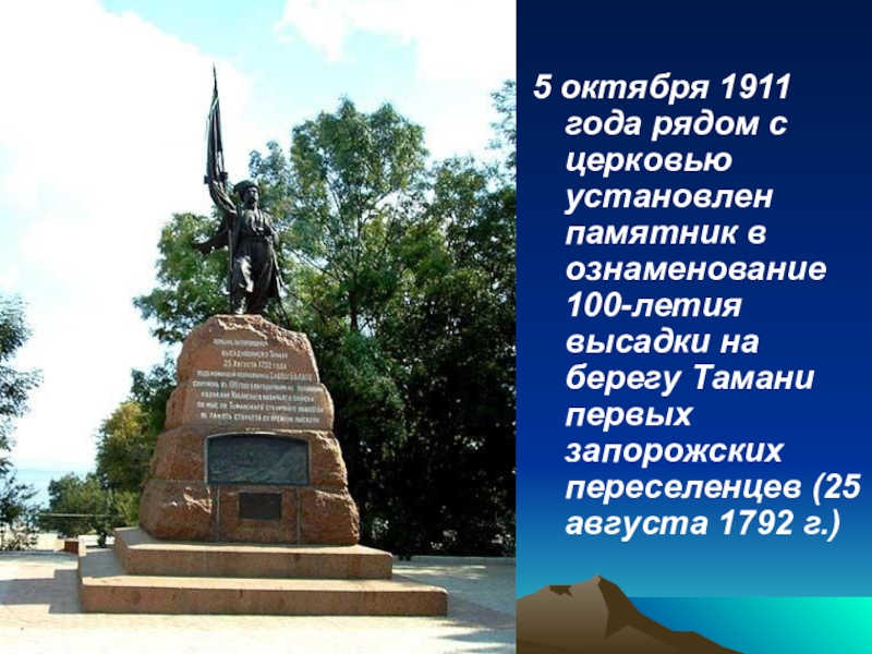 Слайд 165 октября 1911 года рядом с церковью установлен памятник в ознаменование