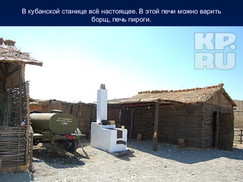 Слайд 37В кубанской станице всё настоящее. В этой печи можно варить борщ,
