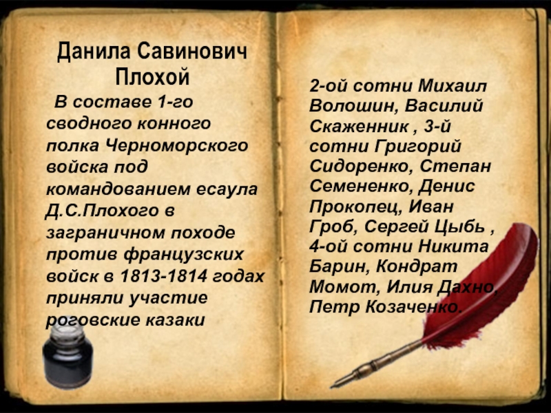 В составе 1-го сводного конного полка Черноморского войска под командованием есаула Д.С.Плохого в заграничном походе против французских войск в 1813-1814 годах приняли участие роговские казаки