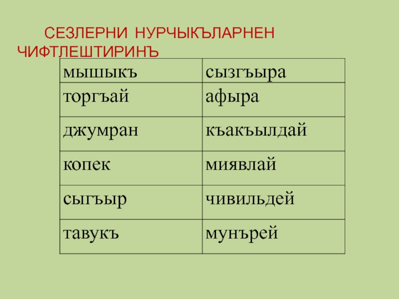 Слайд 20 СЕЗЛЕРНИ НУРЧЫКЪЛАРНЕН ЧИФТЛЕШТИРИНЪ