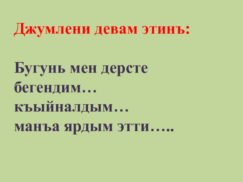 Джумлени девам этинъ:Бугунь мен дерстебегендим…къыйналдым…манъа ярдым этти…..