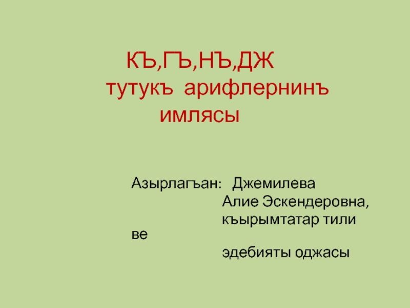 Презентация, доклад КЪ,ГЪ,НЪ,ДЖ тутукъ арифлернинъ имлясы