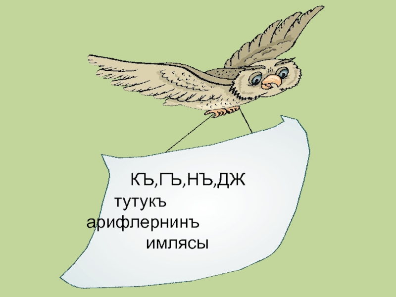 Слайд 1 КЪ,ГЪ,НЪ,ДЖ тутукъ арифлернинъ имлясы