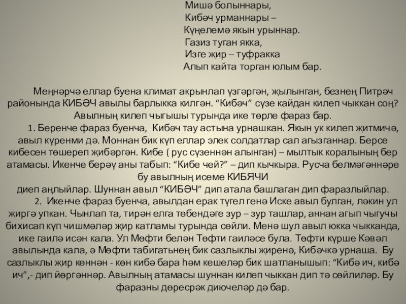 Слайд 1Татарстан Республикасы Питрәч муниципаль районы Кибәч авылы тарихы