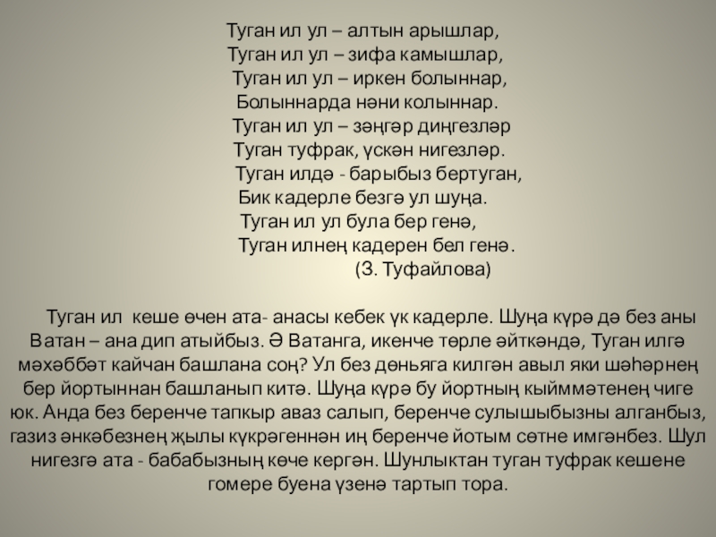 Туган ил ул – иркен болыннар,