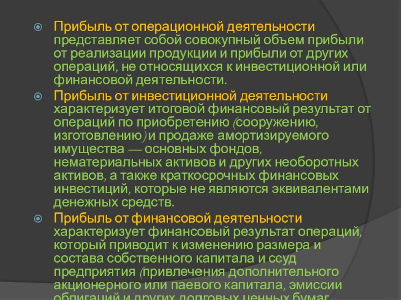 Слайд 8Прибыль от операционной деятельности представляет собой совокупный объем прибыли от реализации