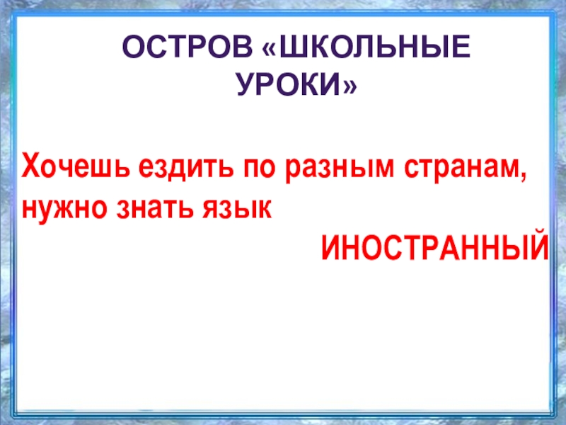 Остров «ШКОЛЬНЫЕ УРОКИ»Хочешь ездить по разным странам, нужно знать язык ИНОСТРАННЫЙ